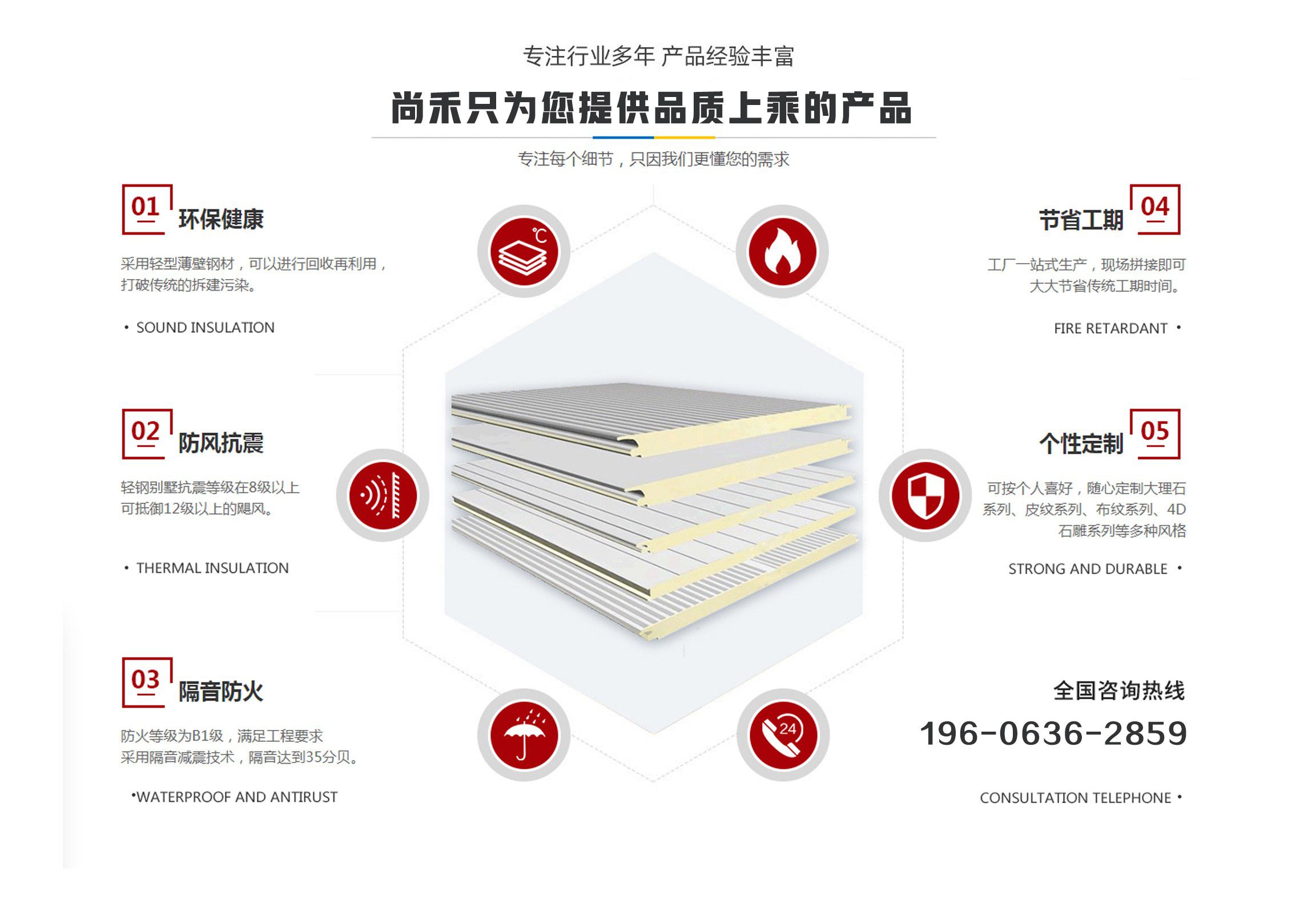山東尚禾經貿有限公司是集板材設計、研發(fā)、生產、施工、一體化的科技公司,并在同行業(yè)中率先通過了質量、環(huán)境、安全管理體系認證。公司2011年投入資金2000余萬元引進世界先進的聚氨酯節(jié)能板連續(xù)生產線、意大利進口發(fā)泡系統,采用六組份在線自動操作混合澆注技術,在線一次性完成社會配料中心或工廠的配比混合工藝,并可以根據溫度在線自動調整,從而生產處與眾不同的高強度、節(jié)能型、綠色環(huán)保的聚氨酯夾芯板。(其使用年限高于同行業(yè)其他品牌5-10年) 公司主要經營范圍包括聚氨酯夾芯板,PU夾芯板,冷庫板,潔凈板,聚氨酯冷庫板,冷庫保溫板的設計、生產、銷售、技術指導、安裝及一體、以及進出口業(yè)務,是中部六省最大的綠色節(jié)能建材生產基地。聚氨酯夾芯板年產200萬平方米、PU夾芯板、冷庫保溫板500萬平方米、鏈整產業(yè)綜合實力,開創(chuàng)了六省至中西部創(chuàng)新型中小名企總部基地,并將著力推進中國中西部地區(qū)集成房屋住宅產業(yè)化發(fā)展進程。 科技創(chuàng)新、節(jié)能典范。千萬間始終秉承“誠信、合作”的企業(yè)文化精髓,長期致力于鋼板材結構節(jié)能建筑產業(yè),愿與社會各界攜手合作,共鑄綠色、環(huán)保美好未來。 產品具有良好的絕熱、阻燃、隔音、環(huán)保、耐久性能,可廣泛應用于工業(yè)、商用建筑內外墻、以及民用建筑外墻保溫、空調通風系統、專用防火保溫門等領域。 我們始終秉承...